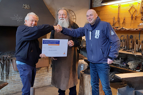 Onlangs is een cheque door het Coöperatiefonds van de Rabobank uitgereikt aan ‘onze’ smederij in de Begine. Wij kregen deze cheque van € 500 voor de aanschaf van een ‘zadelblok’. Dat is een speciaal aambeeld dat we als Stichting De Begine Smidte op onze verlanglijst hadden staan.