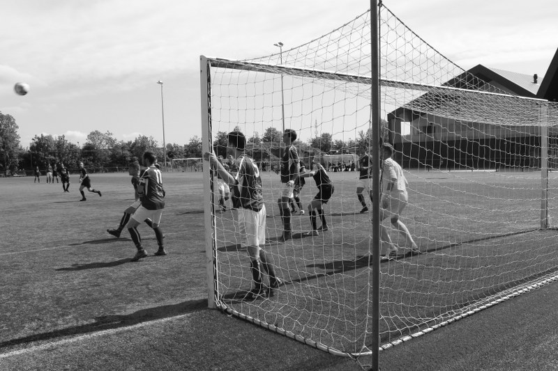 Links het stenen gebouwtje met de kleedkamers, toen ook wel ‘de Keet’ genoemd.