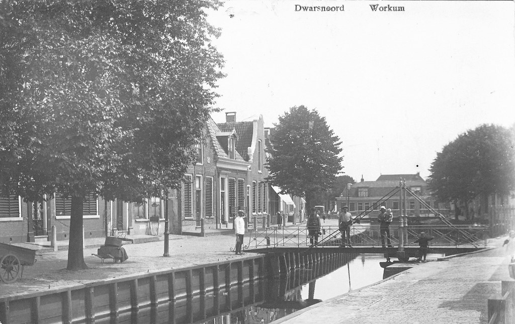 De vaart van het Dwarsnoard werd altijd Noarderhaven genoemd. Op de foto is het moeilijk te zien, maar er waren twee bruggen. De goed zichtbare brug was ter hoogte van nummer 45 links, iets voorbij de bocht van het Houtmolenstreekje. De andere ter hoogte van nummer 69 links, nu Fascia Therapeutisch Centrum.