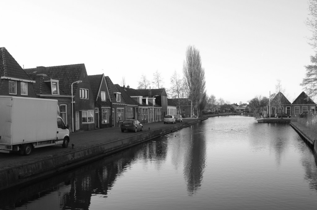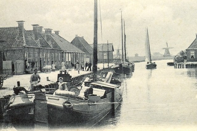 Een blik en de lens gericht op de Emmabuert, bij de echte Workumers beter bekend als de Emmakade. De foto’s zijn vanaf de Beginebrêge genomen. Op de bovenste foto uit 1899 zijn op de achtergrond twee molens te zien. Links de betonmolen van Hobma en rechts de Roggemole die in vroeger tijd een leermolen was. Het dwars staande gebouwtje links, dat tot voor kort nog dienst deed als het praktijkgebouw van dokter De Weerd, diende in de tijd dat de oude foto werd genomen als een opvang voor patiënten van wie men vermoedde dat ze een besmettelijke ziekte hadden of bij wie zulks was vastgesteld. Het schip op de voorgrond is een hoogstwaarschijnlijk (iedereen op de redactie is die mening toegedaan) houten skûtsje. Met dergelijke schepen werd ook vaak turf vervoerd en om die reden zal het schip wel aan de Emmakade zijn afgemeerd. Toch voeren er in 1899 al genoeg ijzeren skûtsjes in onze provincie. Het eerste ijzeren skûtsje voor een Friese schipper gleed namelijk in 1887 van de helling bij Mulder in het Groningse Vierverlaten. Twee jaar later, tien jaar dus voordat de bovenste foto werd genomen, kwam het eerste ijzeren skûtsje dat in Friesland is gebouwd van de werf bij Bos in Echtenerbrug.