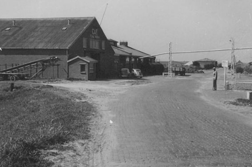 In de Friso van 1 april 1950 het bericht over de aanbesteding voor het bouwen van een opslagloods voor de C.A.F. (Coöperatieve aan – en verkoopvereniging voor de landbouw in Friesland) naast de bestaande Coöp. Grasdrogerij. Voor deze aanbesteding bestond een zeer grote belangstelling. De bovenzaal van de Wijnberg was geheel gevuld. Er waren 37 aannemers vanuit heel Friesland die ingeschreven hadden, waaronder drie Workumers. A. de Jager, Fa. Beuker en H.J. Voets.