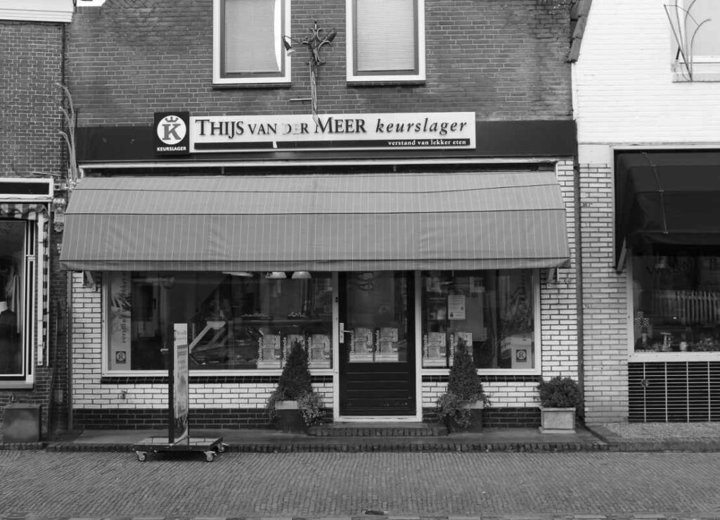 In 1937 woonde U.D. van der Meer in dit pand. In de Friso van 1937 stond de volgende advertentie: Rund-Kalfs- en Varkensslagerij Markt D 16. Door aanschaffing van een nieuwe electrische Automatische Koelinstallatie ‘Servel’ kunnen wij U ook in de zomermaanden elken dag van versch vleesch voorzien.