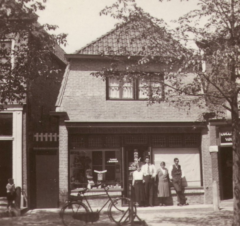 Op de foto uit 1935 Jelle de Hoop en Jannie Tensen en Jurjen de Jager en Antje de Hoop voor de winkel. Jurjen de Jager had een sigarenmagazijn en een in handel boeken en papier. In de jaren 50 komt Bauke Kemker in dit pand te wonen en start een bibliotheek en later de drukkerij.