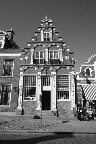 Veel is er In Workum niet meer over dat bogen kan op bouwkundige of historische. waarde. te meer te waarderen. Is het daarom dat een paar mannen in de laatste tientallen jaren er naar gestreefd hebben om zoveel mogelijk van het verleden onzer stad vast te leggen. Misschien wordt een der jongeren door dit loffelijk voorbeeld nog eens geïnspireerd om de geschiedenis op te delven van het bouwwerk dat in zijn sierlijken gevel het stichtingsjaar1663 draagt.