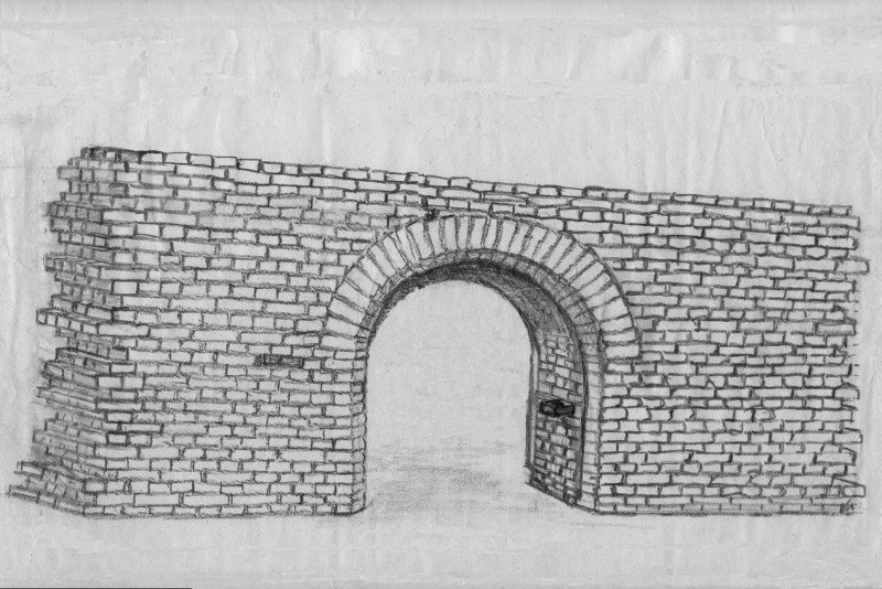 Er zat een weiwater bakje aan de rechterkant. Dit was een uitgeholde kloostermop en stak halfsteens naar buiten. De kloostermop was veel groter dan de huidige bakstenen en werden vooral gebruikt in kloosters, kerken en kastelen.