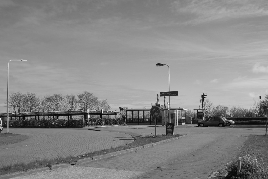 Verder in een oude advertentie.” De deurwaarders Reinbach te Workum en Rodenhuis te Sneek zullen woensdag één April 1885 en, zoo noodig, den volgende dag, bij boelgoed, à contant verkoopen: loodsen, keeten en timmergereedschappen, steigerdeelen, hulpsporen enz. enz. , gebruikt bij den bouw der Stations te Molkwerum, Hindeloopen, Workum, Oudega en IJlst.”.