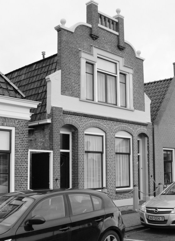 Opvallend is de vorm van de gevel zoals die er nu uitziet.