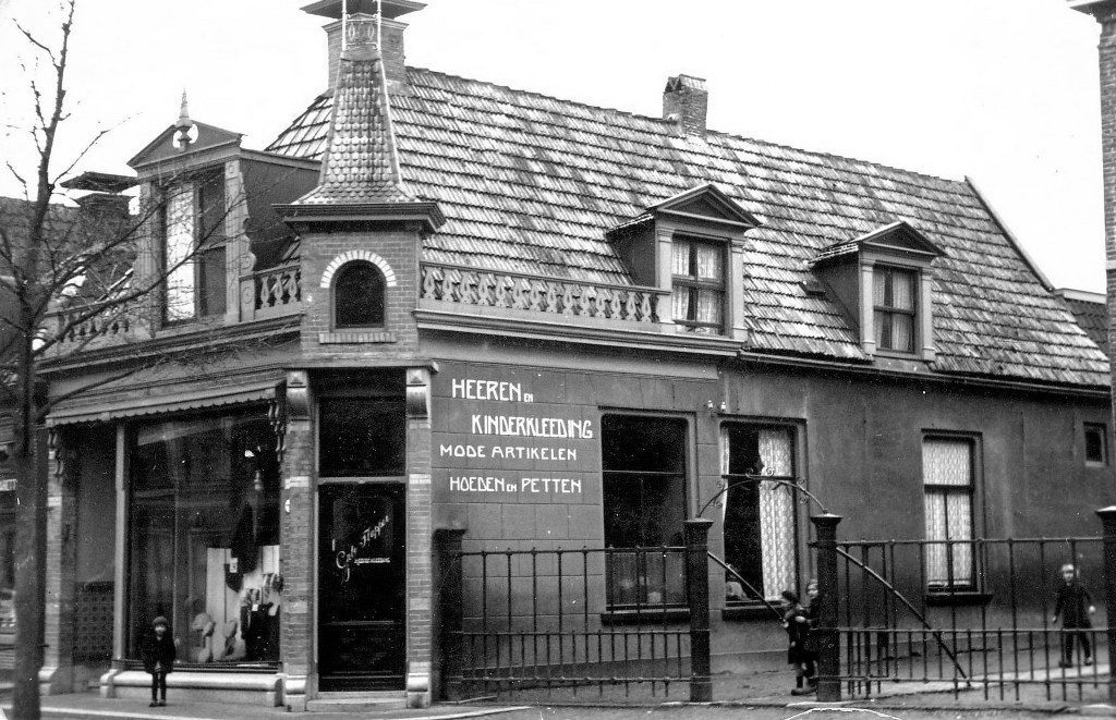 Omstreeks 1900 was hier M.J.Schootstra gevestigd met de verkoop van Horloges, Regulateuren, Pendules, Goud en Zilverwerken. Rijwielen en naaimachines.