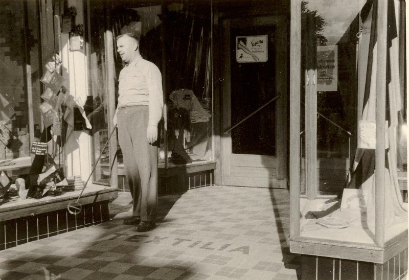 Freark van Duinen, fan Holwerter krite nei Warkum ta,Iepene op ’t Súd syn winkel ‘Textilia’.Earst wie Jan Sikkes deryn syn compagnon,Mar mei dy gearwurking roun it op ’e non.Mar beide soene hjir lang in eigen saek ha