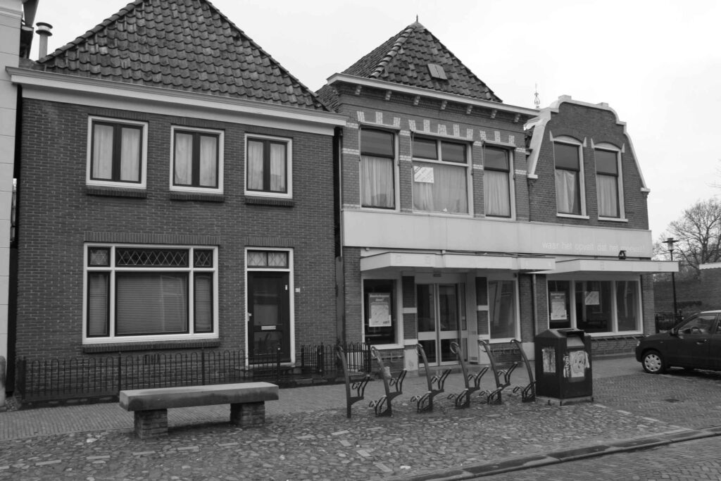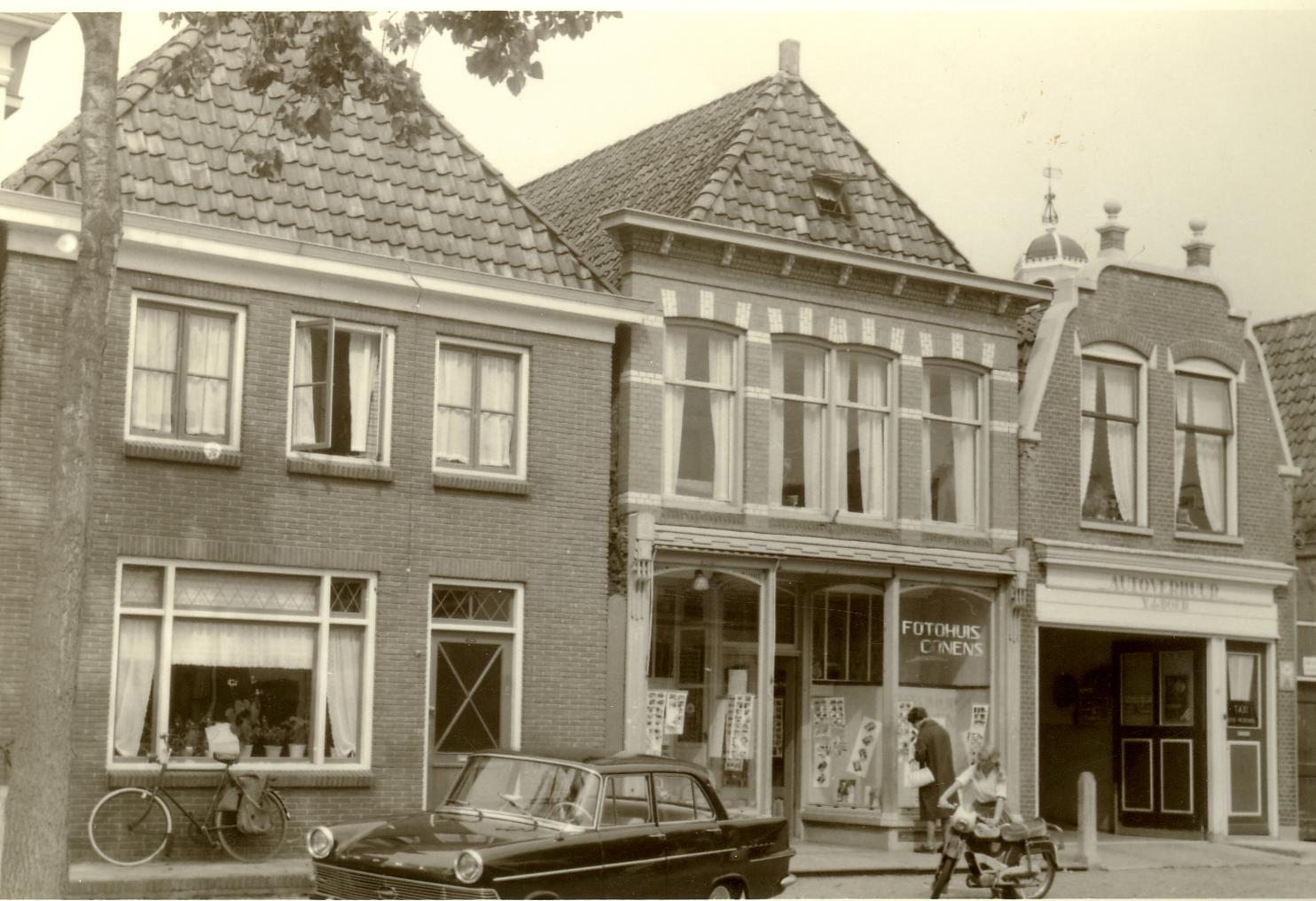 In de reeks ‘Workum van vroeger en nu’ op de bovenste foto de panden Noard 65, 67 en 69 zoals ze er in 1954 uitzagen. Noard 65 was toen een woonhuis en is dat nu nog, maar op de Nummers 67 en 69 waren in 1954 respectievelijk foto Conens en Yme de Boer gevestigd. Deze laatste twee panden zijn nu de inmiddels verlaten behuizing van de supermarkt van Poiesz, zoals op de onderste foto to zien is. In pand Noard 67 was in 1928 een manufacturenzaak gevestigd onder de naam A.Brandsma.