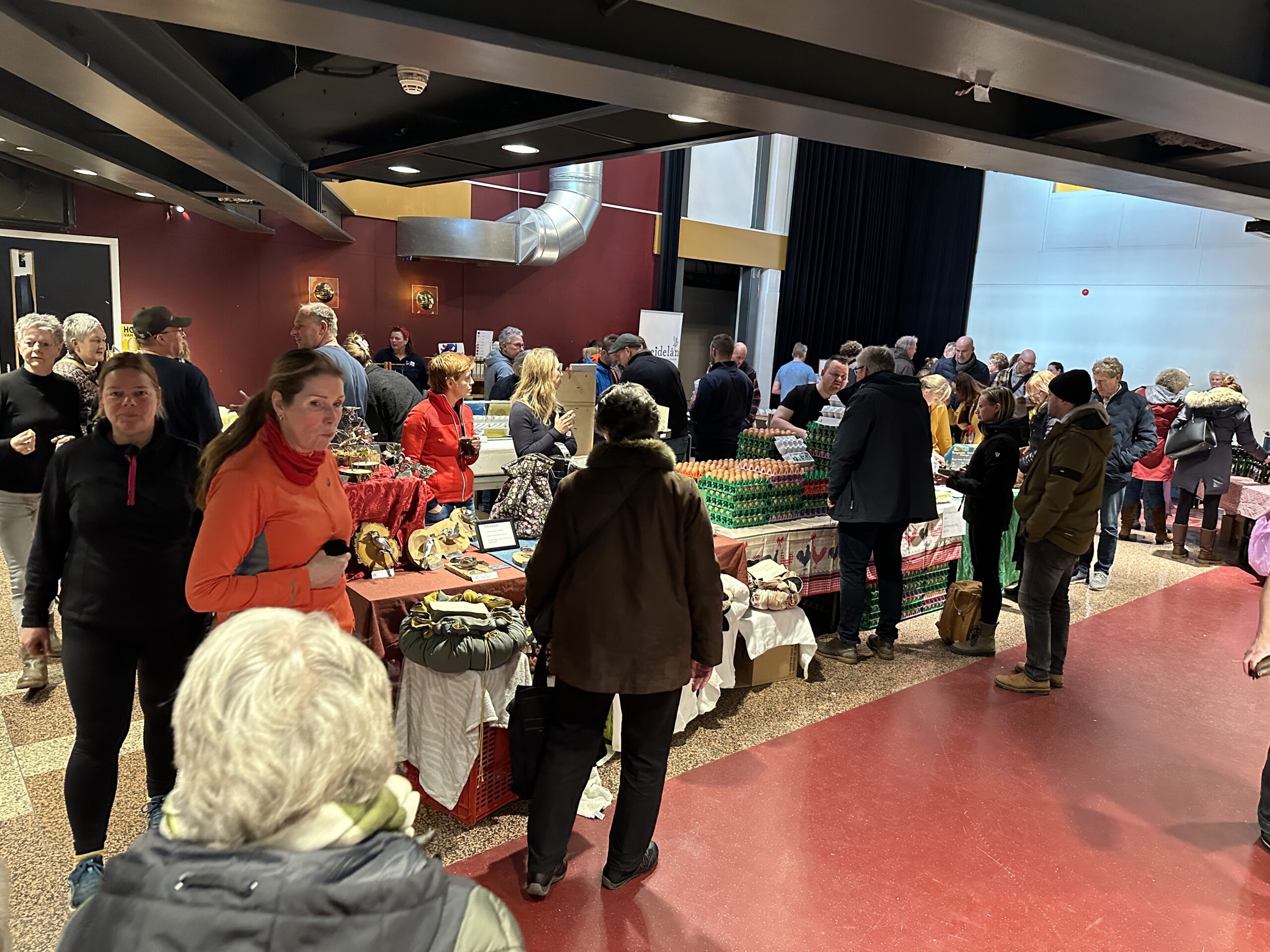 In de foyer was het ook een gezellige drukte. Aan alle tafels werd druk gekletst en gedronken. Van tevoren was aangekondigd dat de markt ook een sociale component zou hebben en dat is goed gelukt.