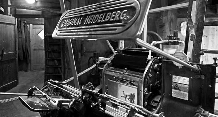 Uit mijn ooghoeken zag ik een man haastig in de weer met grote stapels papier. Hij kwam van een zoldertrapje af. Deze persoon bleek de drukker te zijn, Gerrit Kemker. Hij ging nu bezig met de drukpers, waar een rol werd voorzien van een grote klodder drukinkt. Het verdelen van de inkt bleek nogal een precisiewerkje. Toen hij daarmee klaar was, kwam de machine met een hels kabaal in beweging. Ondertussen ging hij naar een enorm apparaat om papier samen te persen en daarna af te snijden. Er bleken geboortekaartjes onder zijn hand vandaan te komen, klaar voor aflevering.