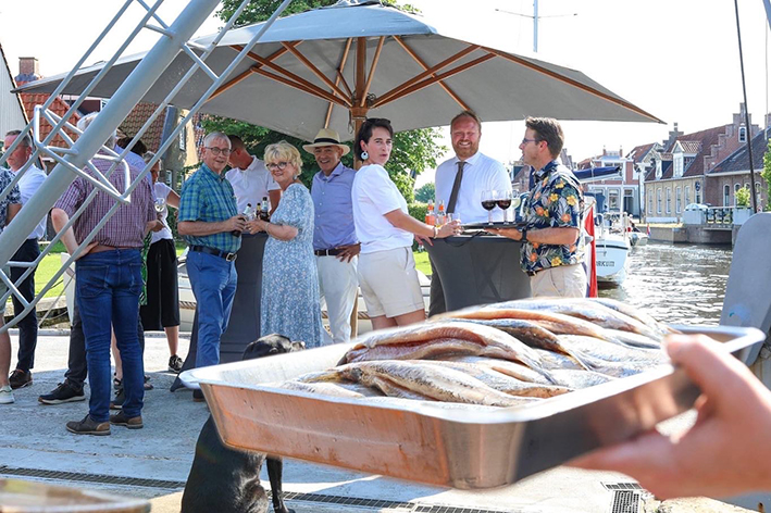 Afgelopen donderdag was het terrein van De Haan Watersport voor de tweede keer het toneel van de OVW Haringparty. De Ondernemers Vereniging Workum organiseert dit evenement jaarlijks met als doel ondernemers, lokale besturen, verenigingen en politieke vertegenwoordigers te verbinden. En waar kan dat nou beter dan op een ongedwongen, sfeervolle locatie onder genot van een drankje en een Hollandse Nieuwe? Voorzitter Afke Visser opende namens het bestuur van OVW de Haringparty en wethouder Bauke Dam sprak de aanwezigen kort toe, waarna de haring genuttigd kon worden.