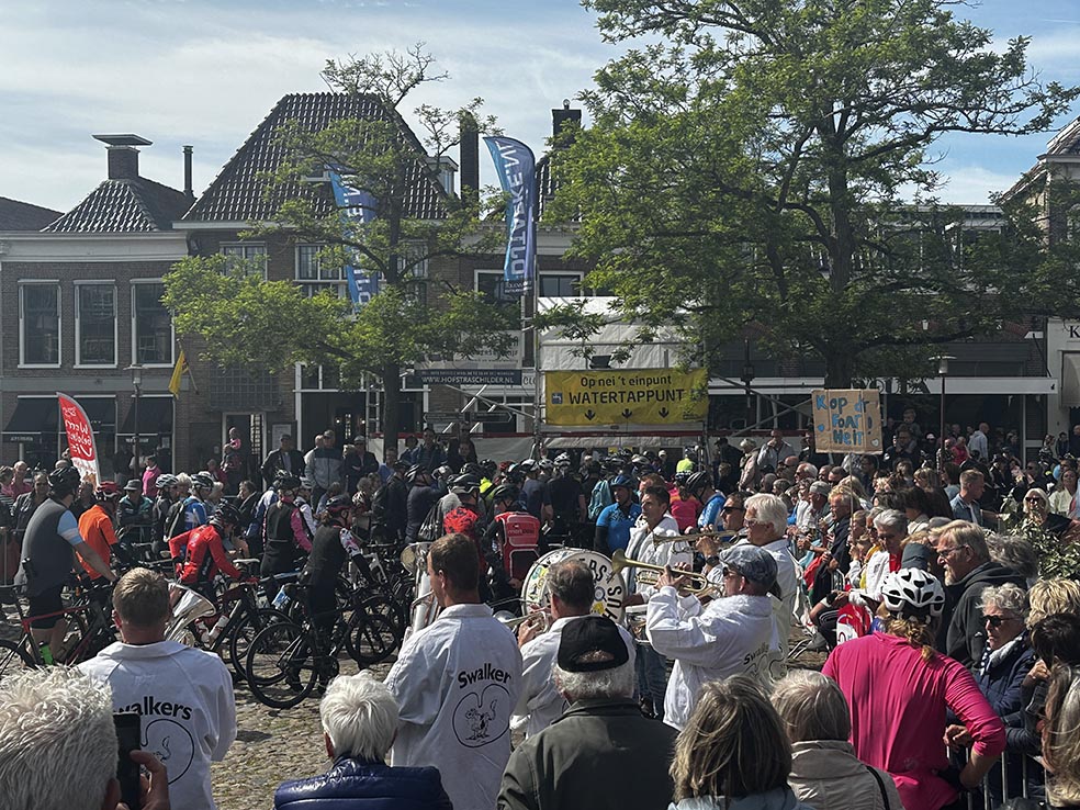 Maar de meeste belangstelling ging natuurlijk uit naar de Fiets Elfstedentocht van maandag. Wat was alles, ook in Workum waarvan deze foto getuigt, prima geregeld. Het enige nadeel was in feite dat er tussen Holwerd en Dokkum en later op de dag tussen Stavoren en de finish in Bolsward een krachtige wind het nodige van de deelnemers vergde. De laatste lootjes wogen zodoende zwaar. Maar verder niets dan lof!
