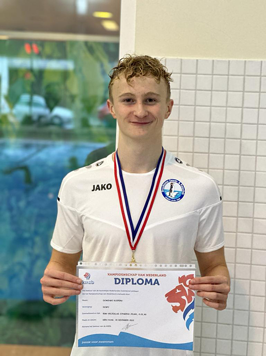 Afgelopen weekend stond in het teken van de Nederlandse kampioenschappen zwemmen in Den Haag voor Domingo Kuipers (foto). Drie dagen lang kon de top van de Nederlandse jeugd en senioren zich van zijn of haar beste kant laten zien om te gaan voor goud, zilver of brons.
