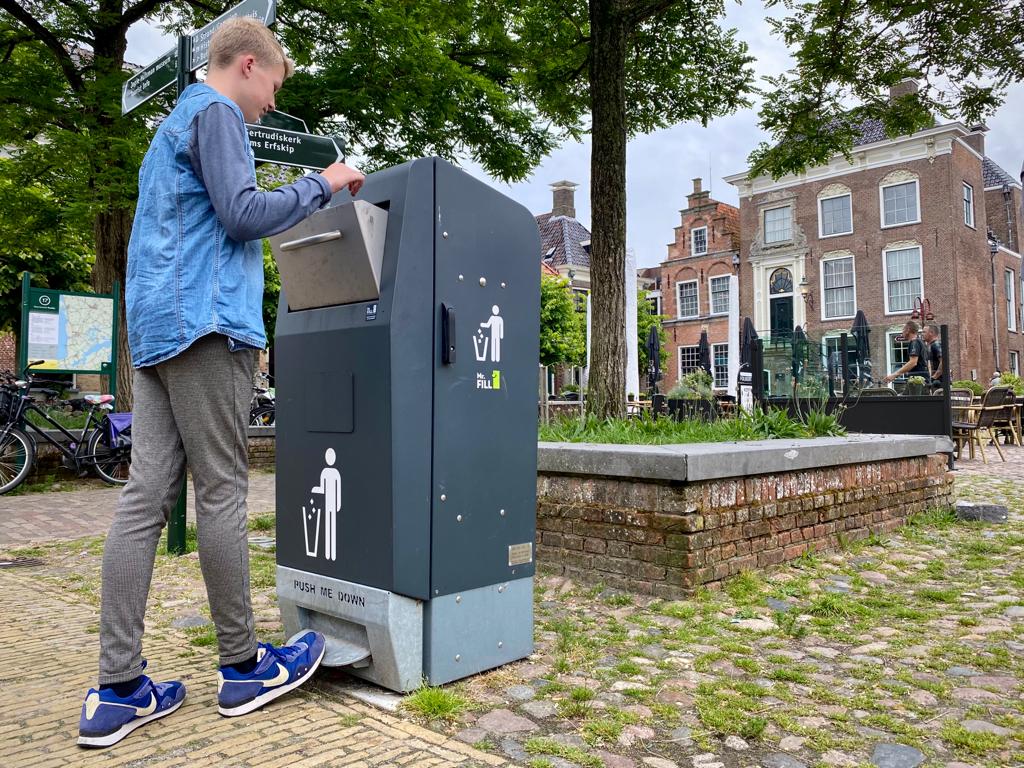 Heb jij al een Mr Fillbak gespot? Sinds een jaar staat er een Mr Fillbak op de Merk in Workum. En sinds april staat er ook een op het Schaapmarktplein in Sneek. De nieuwe openbare vuilnisbak kan afval zeer goed samenpersen, waardoor er op korte termijn heel wat kan worden verzameld. Hij bevat een zelfpersende afvalbak met sensoren, die ons een seintje geeft wanneer hij vol raakt. Elke Mr. Fill heeft een voetpedaal, waardoor er geen contact met de handen nodig is. Wie weet krijgen we er in de toekomst nog meer in onze gemeente.