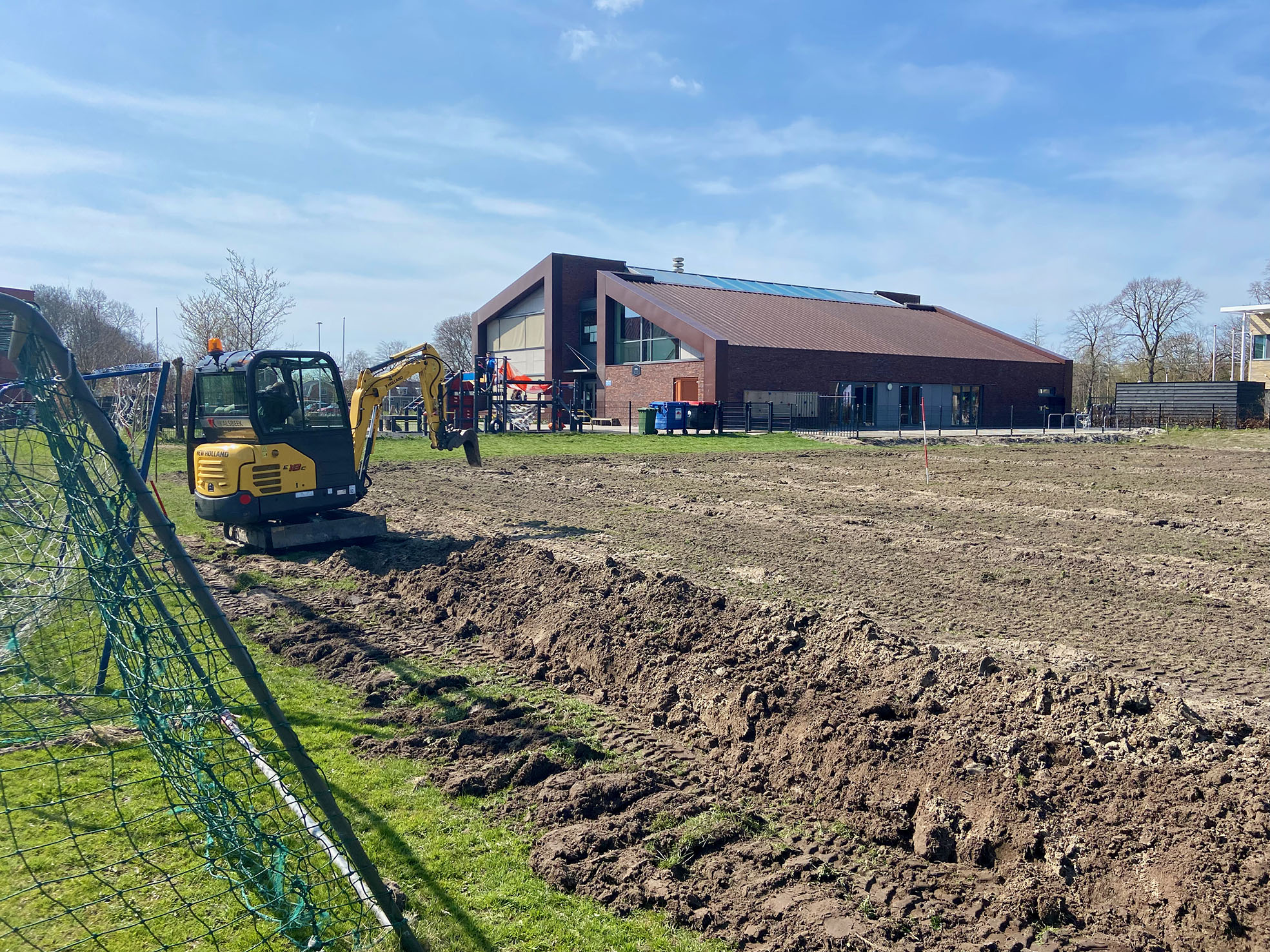 Vorige week maandag 3 april is Van Kalsbeek GWW uit Ferwoude begonnen met de aanleg van sportvelden op een stuk grond tussen de basisscholen en de voetbalvelden. In eerste instantie zullen twee beachvolleybalvelden en een speelgrasveld worden aangelegd. In de toekomst zullen wellicht nog andere speelvelden worden aangelegd. De initiatiefnemers zijn de drie basisscholen Sint Ludgerus, It Finster en De Pipegaal, voetbalvereniging VV Workum en volleybalvereniging SVW Volleybal.