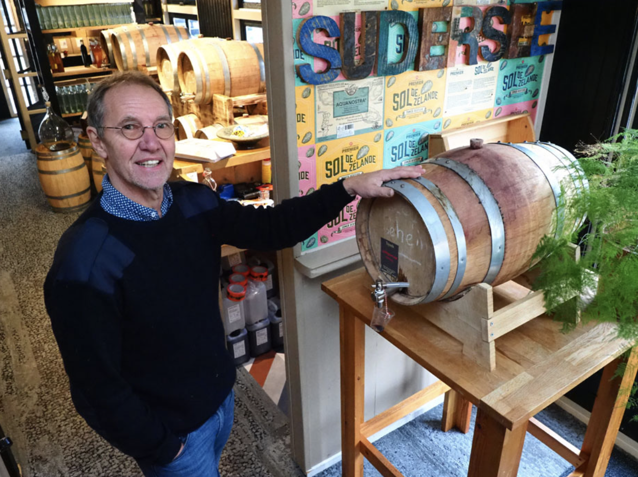 Piet Bakker tapt zijn inspiratie voor de inrichting van de tweede vestiging uit zijn zaak in Hindeloopen, waar hij na een één jaar durende cursus in 2020 startte met likeurbrouwerij Puur Sudersee op basis van vers, rijp fruit en kruiden en zorgvuldig geselecteerde smaken. De toegepaste receptuur is afgestemd op de seizoenen, dat wil zeggen op de beschikbaarheid van bijvoorbeeld bepaalde rassen peren en appels, rabarber, rozenbottels en andere bosvruchten. Grappige namen en dito verhalen met een historisch fundamentje sieren de robuuste vierkante flessen die net zo zeewaardig zijn als de Hindelooper schippers die in de 17e en 18e eeuw van Friesland naar Scandinavië trokken om er hout op te halen.