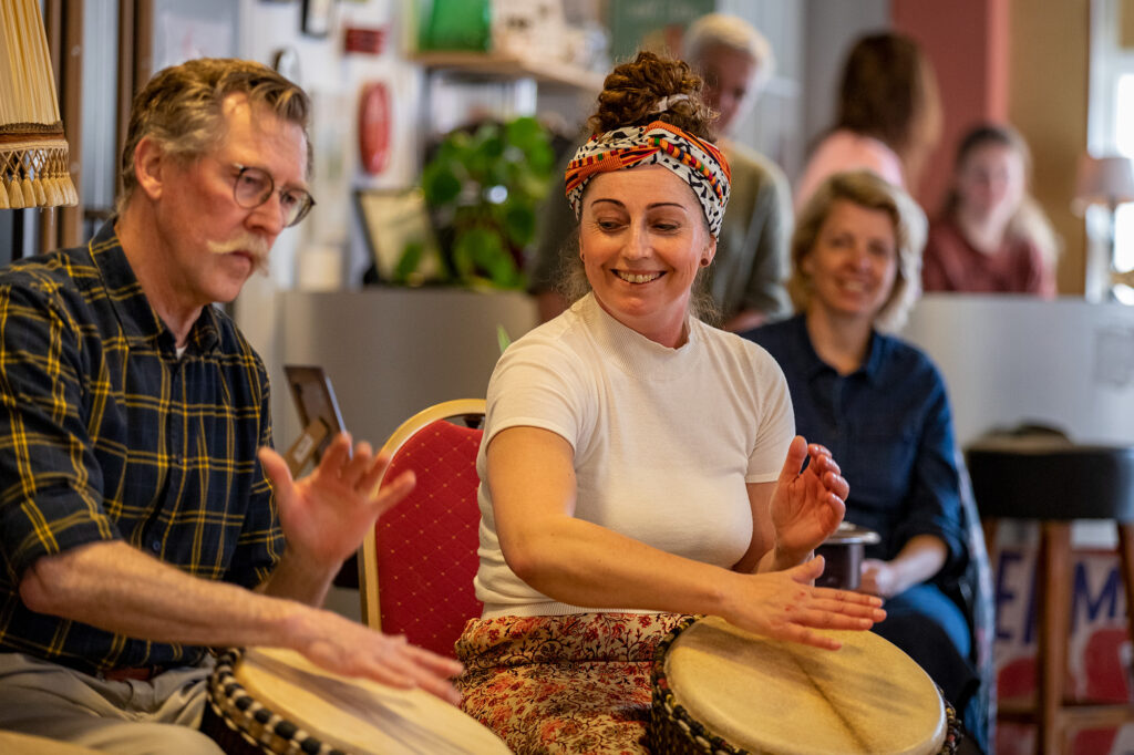 Een djembégroep van Atrium onder leiding van Moustapha Seck bijt het spits af met een opzwepend optreden in de Brijbekzaal. Vanaf 13.30 uur klinkt er ook muziek in de Kleine Zaal en de Nijefurdzaal.