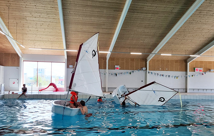 Na twee coronajaren geen zwembad-les te mogen hebben gegeven, mochten we dit jaar als Zeilvereniging Workum eindelijk weer. En dat dan ook nog in het nieuwe zwembad van de Rolpeal in Workum. Op zondagmiddag 24 april hadden we een uur het hele zwembad tot onze beschikking. Met de begeleiders, twee Optimisten en een tiental kinderen, werden teambuilding, omslaan, kennis en zwemvaardigheden getest. Maandag 9 mei was dan de eerste les op het Soal bij de ‘Punt’ van Workum. Net als vorig jaar was het schitterend mooi weer, met misschien iets te weinig wind, maar voor de beginnende zeiler perfect. Met in totaal 15 kinderen van 7 tot en met 14 jaar een mooie groep. Voor de vrijwilligers, kinderen en ouders, een superstart. De lessen zijn op de maandagavonden van 17.30 uur tot 19.30 uur bij het wedstrijdcentrum van de Zeilvereniging Workum op de ‘Punt’. Kom gerust eens kijken.